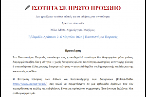 ΠΡΟΣΚΛΗΣΗ | 2-6 Μαρτίου : "Ισότητα σε Πρώτο Πρόσωπο"